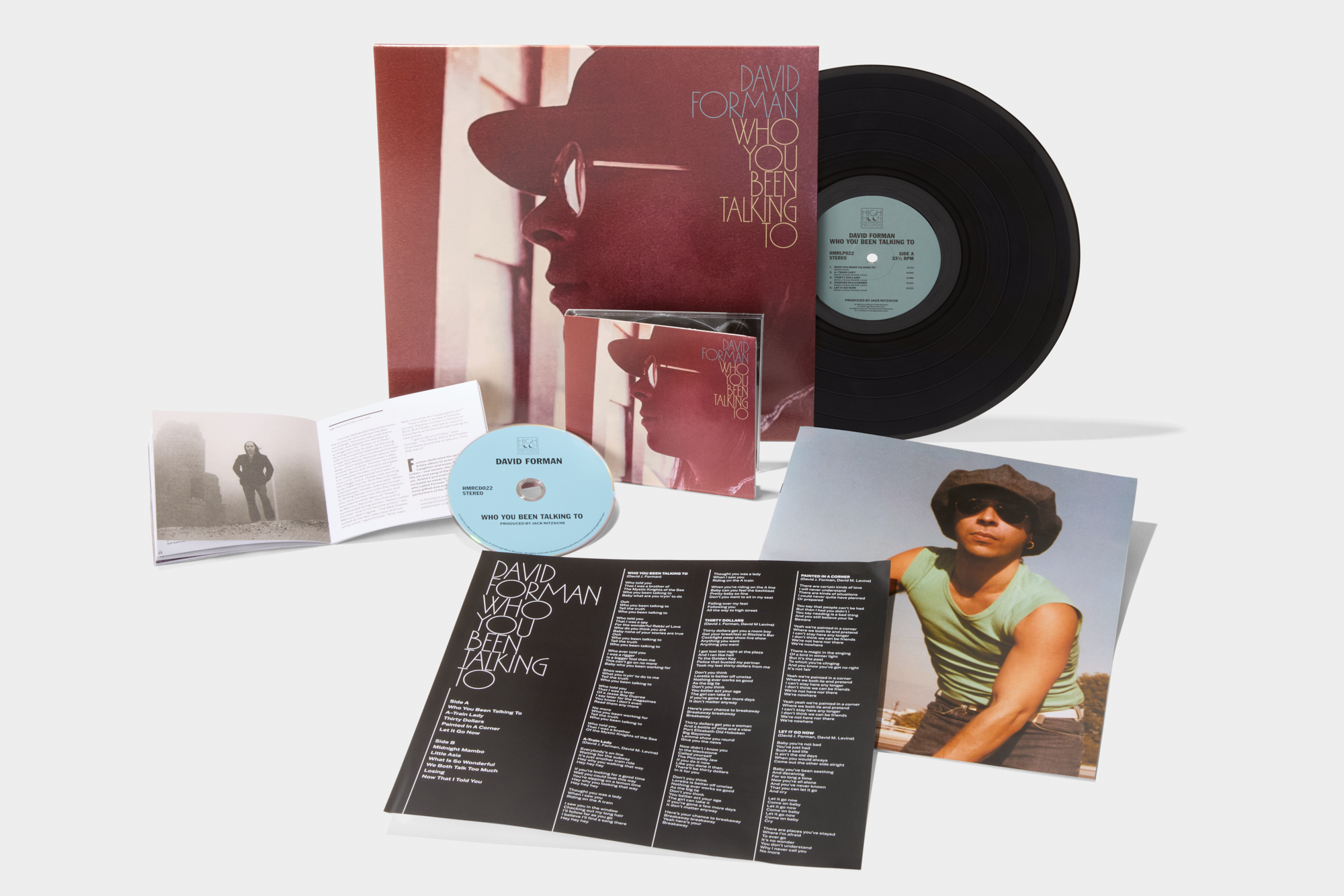 Both the LP and CD come with a deluxe booklet with extensive liner notes by acclaimed journalist Joe Hagan, featuring exclusive interviews with David Forman, Aaron Neville, Jim Keltner, songwriting partner David Levine, and other collaborators. The package includes rare photographs by legendary downtown New York photographer Peter Hujar—known for his images of Susan Sontag, William Burroughs, Candy Darling, and other downtown luminaries, and Peter Berman, along with never-before-seen memorabilia from Forman’s extraordinary life.
